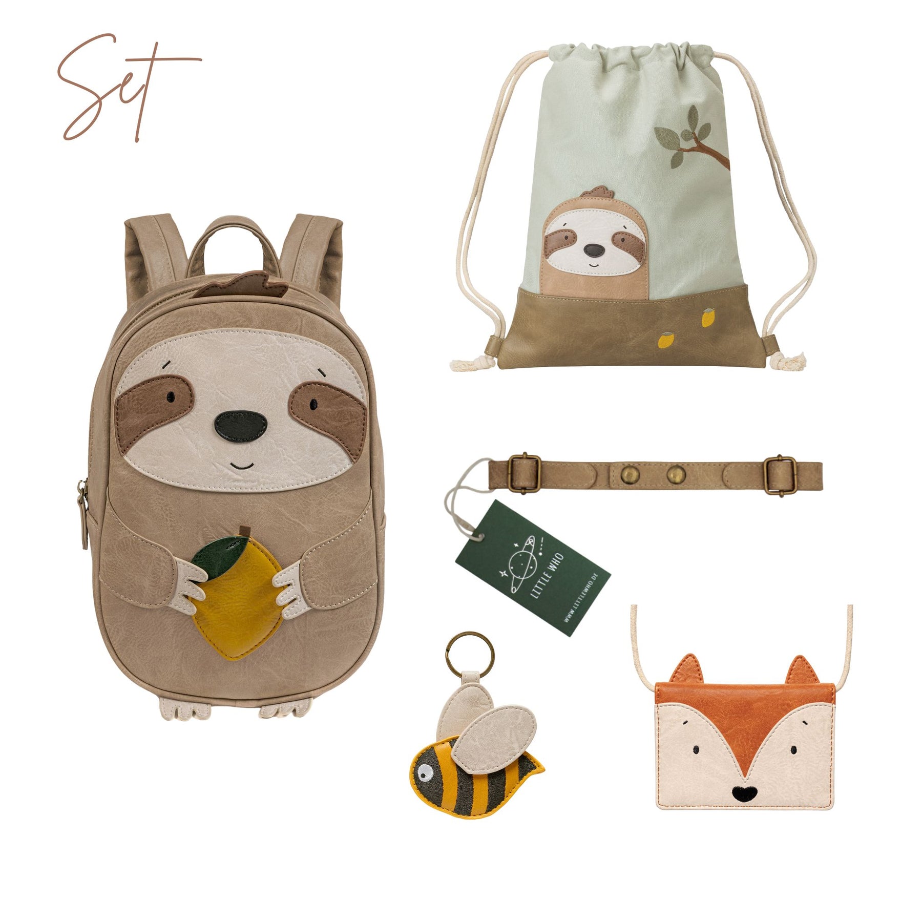 Dieses liebevoll zusammengestellte Set bietet alles, was dein Kind für den perfekten Start in den Kindergarten benötigt. Mit seiner robusten Konstruktion und dem geräumigen Hauptfach bietet der Rucksack Faultier Norbert ausreichend Platz für alle wichtigen Dinge, die dein Kind im Kindergarten braucht. Damit der Rucksack sicher und bequem auf dem Rücken sitzt, ist ebenfalls ein passender Brustgurt im Set enthalten. Passend zu dem Set gehört der Turnbeutel Faultier Thilo, ein toller Begleiter für viele großartige Abenteuer. Der Schlüsselanhänger Biene Sumsi passt optimal zur Kombination aus Rucksack und Turnbeutel. Im Brustbeutel lässt sich perfekt die Fahrkarte sowie Kleingeld verstauen.