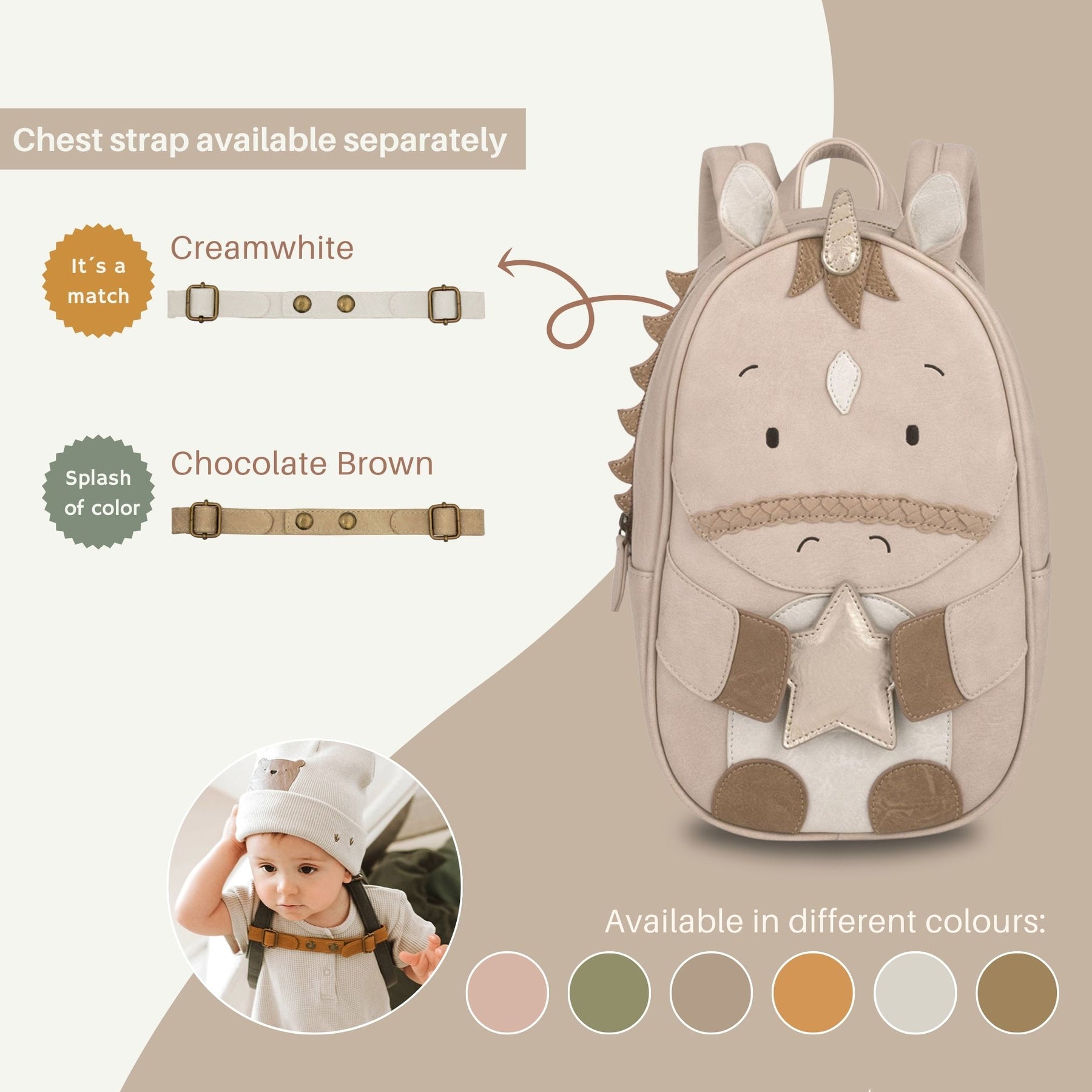 To match our Big Backpack Unicorn Elina, we recommend the chest strap in Creamwhite.